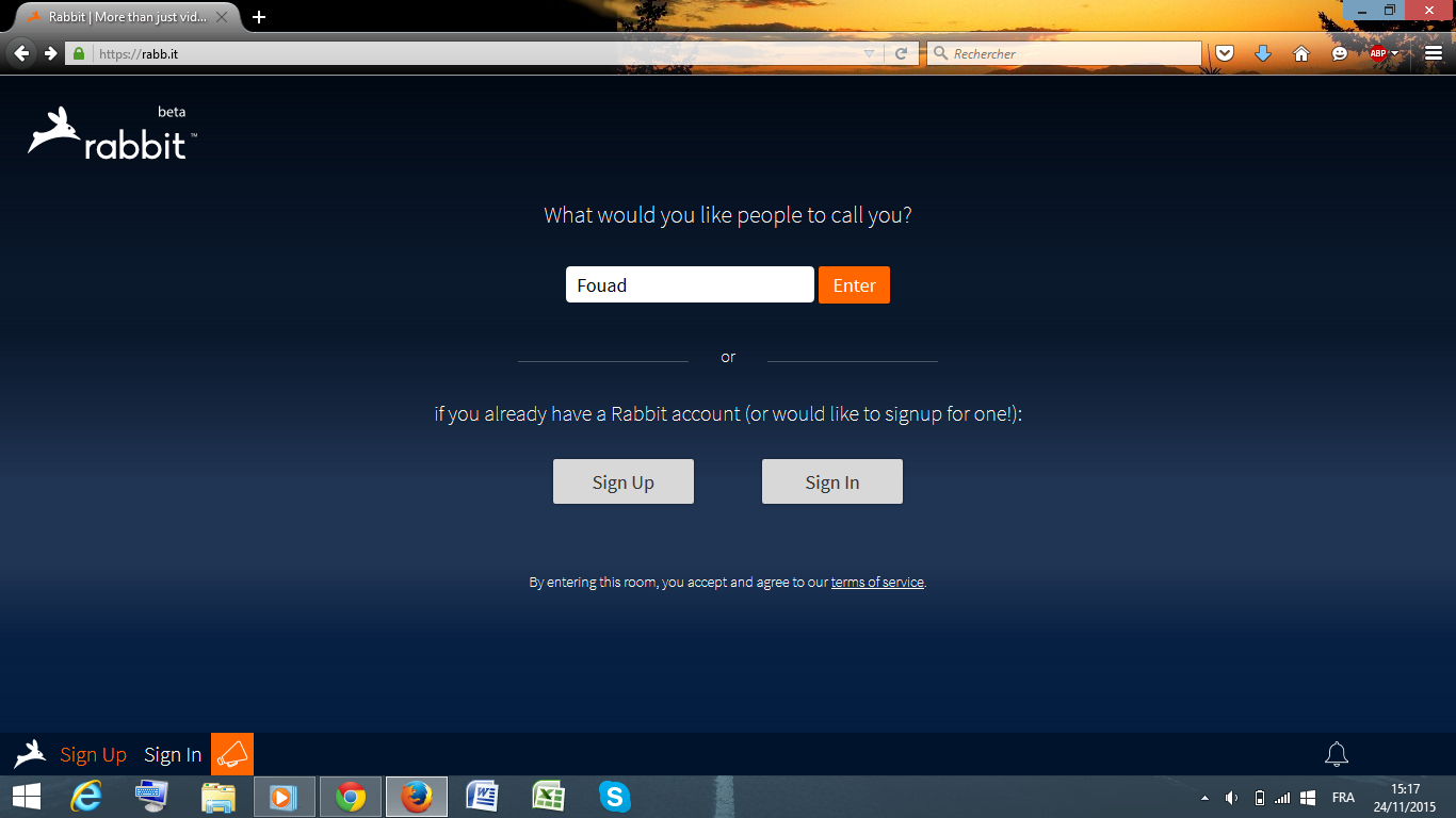 ثم بعد الدخول للموقع إضغط على Chat Now، ثم بعد ذلك ستفتح لك واجهة جديدة، أكتب هناك أي إسم ثم إضغط على Enter.